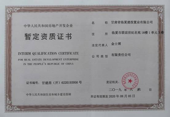 近日,臨夏公司正式取得房地產(chǎn)開發(fā)暫定資質證書。該證書的取得標志著公司正式進入臨夏房地產(chǎn)開發(fā)市場。