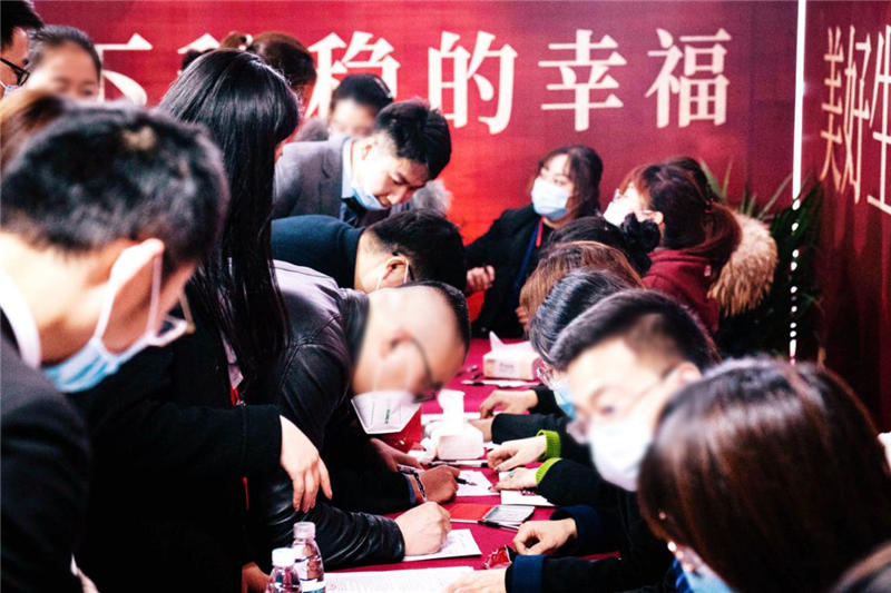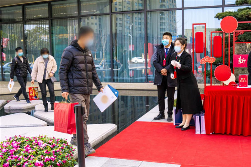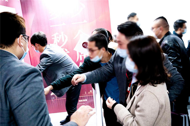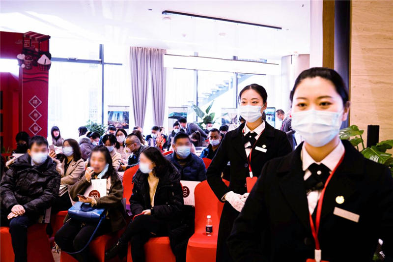 開盤期間,在現(xiàn)場工作人員的引導下,到場客戶按照防疫要求,有序進入營銷中心。雖然每個人都帶著口罩,卻依然能感受到客戶洋溢的笑容,每位客戶都心懷憧憬,對理想居所的期盼溢于言表。隨著主持人宣布選房開始,將氣氛推至高潮,客戶憑鎖資號有序進入選房區(qū),爭分奪秒挑選心儀的房源。