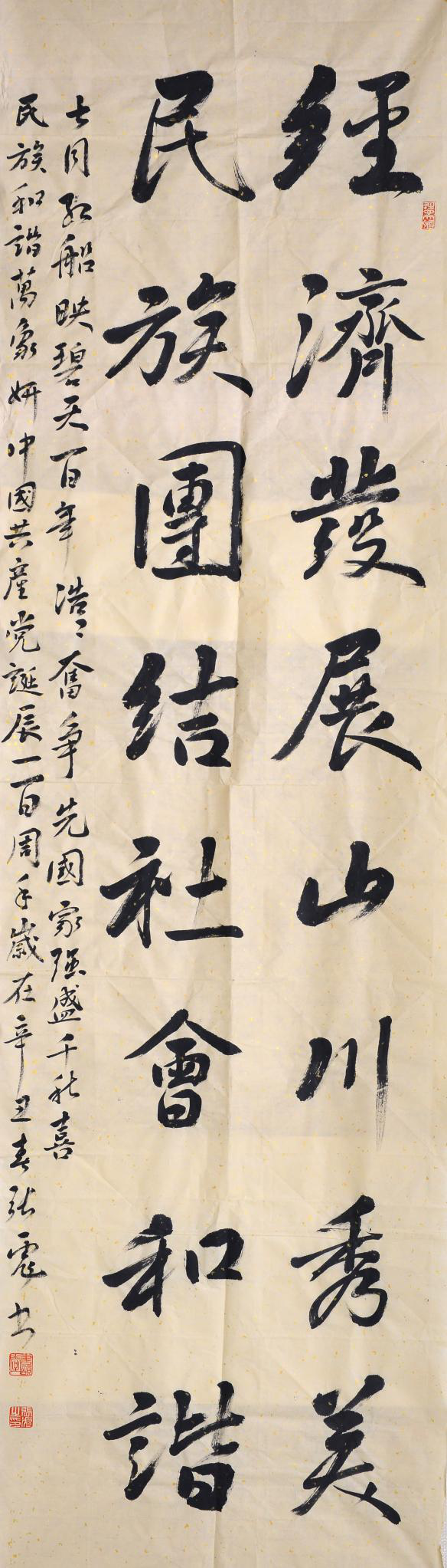 書(shū)法作品筆精墨妙,一橫一豎頌揚(yáng)黨的偉大征程,一撇一捺展現(xiàn)黨的光輝使命。
