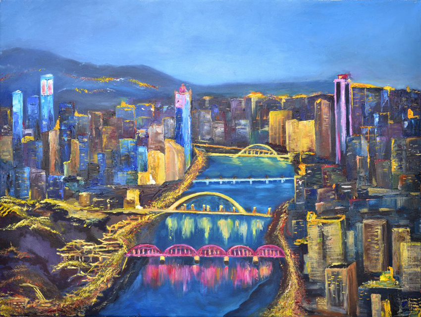 置業(yè)機(jī)關(guān) 藺智 油畫(huà)《夜幕蘭州》
