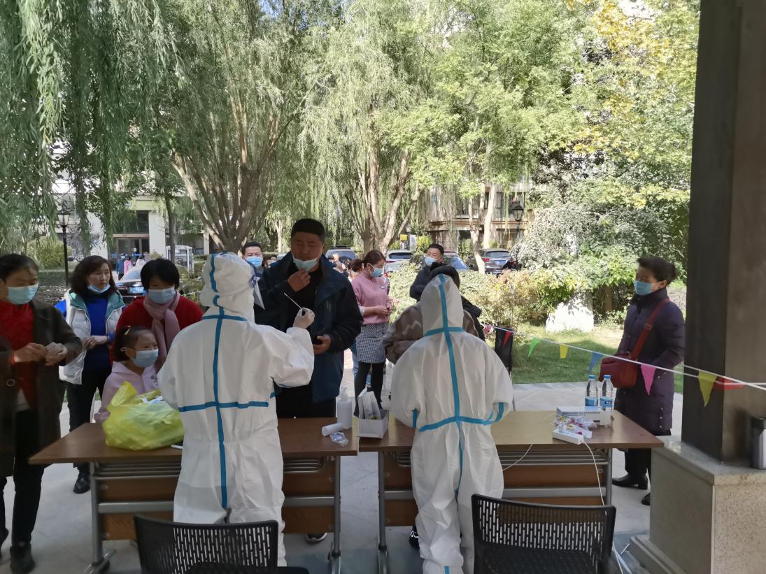 10月20日早,物業(yè)工作人員聯(lián)系當?shù)睾怂釞z測醫(yī)護人員,有序組織開展全小區(qū)核酸檢測。