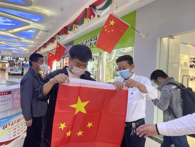 為迎接十一國(guó)慶節(jié)的到來(lái),弘揚(yáng)愛(ài)國(guó)主義精神,賡續(xù)紅色革命血脈,根據(jù)置業(yè)公司黨委相關(guān)要求,資產(chǎn)公司黨支部于國(guó)慶節(jié)前開(kāi)展“喜迎國(guó)慶,贈(zèng)送國(guó)旗,共享愛(ài)國(guó)情”活動(dòng),為項(xiàng)目掛國(guó)旗,為商戶送國(guó)旗。