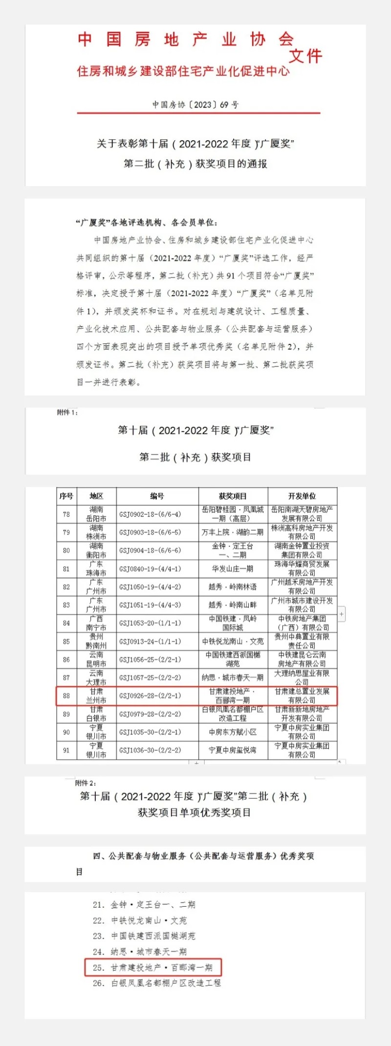 5月15日,由甘肅建總置業(yè)發(fā)展有限公司開發(fā)建設(shè)的百酈灣一期項(xiàng)目榮獲中國房地產(chǎn)業(yè)最高榮譽(yù)獎(jiǎng)項(xiàng)“廣廈獎(jiǎng)”,其中公共配套與物業(yè)服務(wù)獲得第十屆廣廈獎(jiǎng)單項(xiàng)優(yōu)秀獎(jiǎng),成為甘肅省獲此殊榮的兩個(gè)項(xiàng)目之一。
