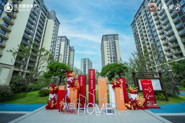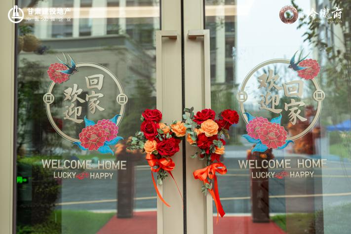 經(jīng)過(guò)盛裝布置,園區(qū)沿途一路鋪裝紅毯,枝頭掛滿(mǎn)紅燈籠,單元門(mén)口點(diǎn)綴燦爛花束,隨處可見(jiàn)“歡迎回家”的標(biāo)語(yǔ),“回家”的暖流直抵人心。