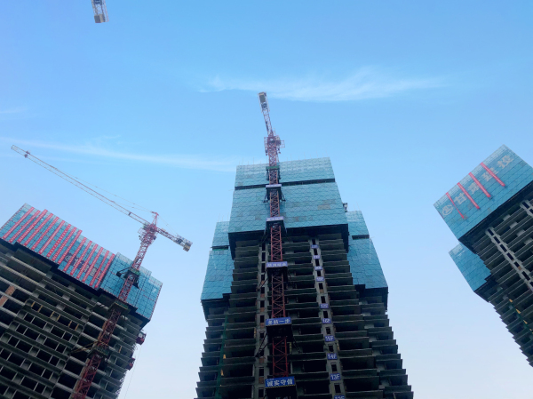 項目規(guī)劃總建筑面積212469㎡,自18年3月1日正式開工,歷經一年零4個多月的時間,一年多的寒暑,四百多個朝夕,在現(xiàn)場全體人員的辛勞工作下,頂著高溫酷暑、暴雨侵襲,克服種種技術難題,保質量、保安全、保進度,如期完成了主體結構的封頂。