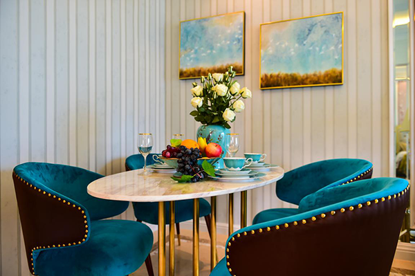85?戶型樣板間選用蒂芙尼設(shè)計風(fēng)格,映襯深受年輕人喜愛的小型戶型格局。裝修風(fēng)格蘊意獨特溫馨,將戀人們的心聲娓娓道來,不迎合,不造作。