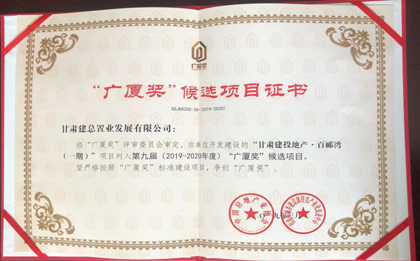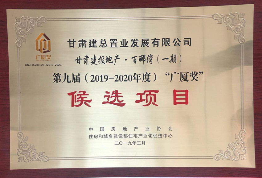4月11日,在中國房地產(chǎn)協(xié)會(huì)各地房協(xié)會(huì)長、秘書長工作會(huì)議上,“甘肅建投地產(chǎn)•百酈灣(一期)”項(xiàng)目入選第九屆(2019—2020年度)“廣廈獎(jiǎng)”候選項(xiàng)目。